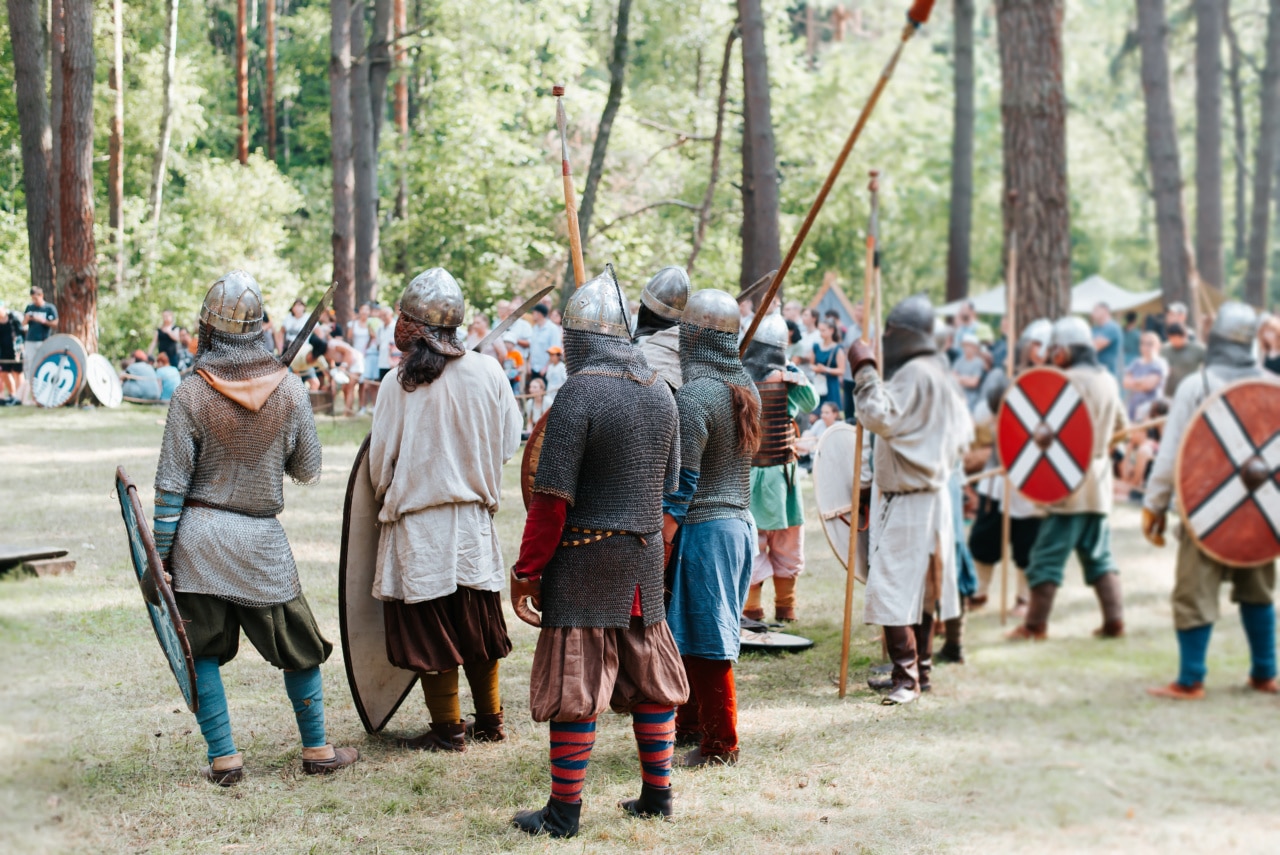 - Combats d’épées et duels en armure.