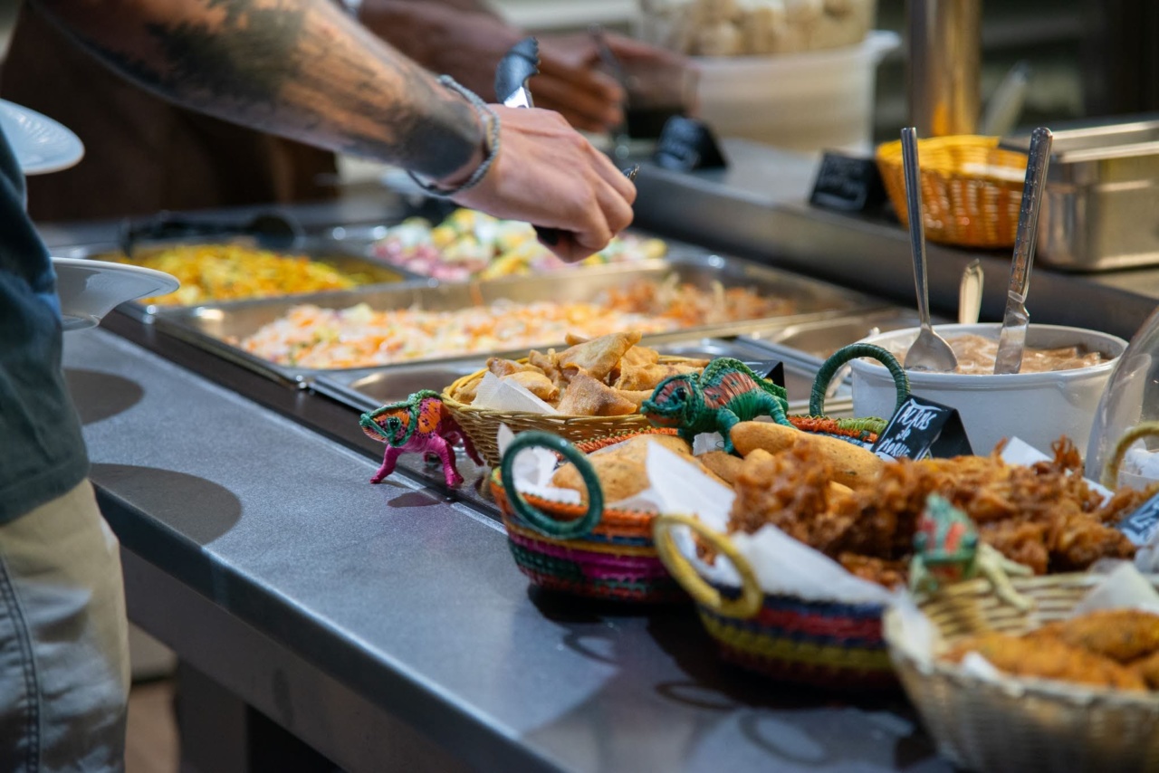 Ici, on savoure la cuisine de Maman Denise : un buffet généreux où l’on retrouve tous les grands classiques de La Réunion — rougail saucisse, rougail dakatine, viandes sarcives, salades créoles, canard à la vanille, sans oublier les incontournables acras et samoussas. Des plats parfumés, faits maison, épicés avec justesse, mais non pimentés : pour ceux qui aiment quand ça chauffe, le piment maison est proposé à part.
